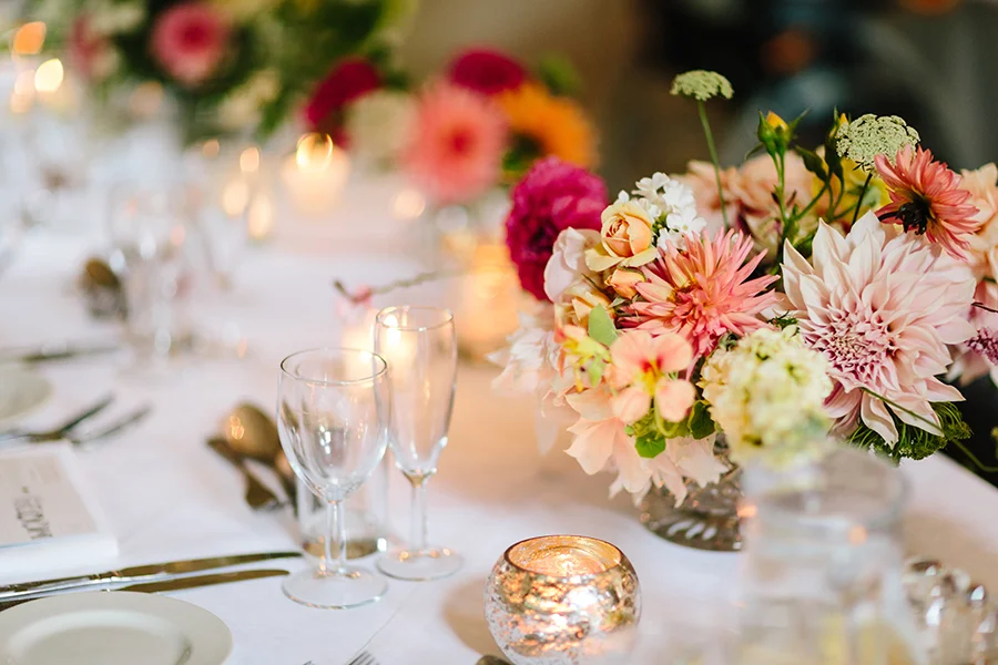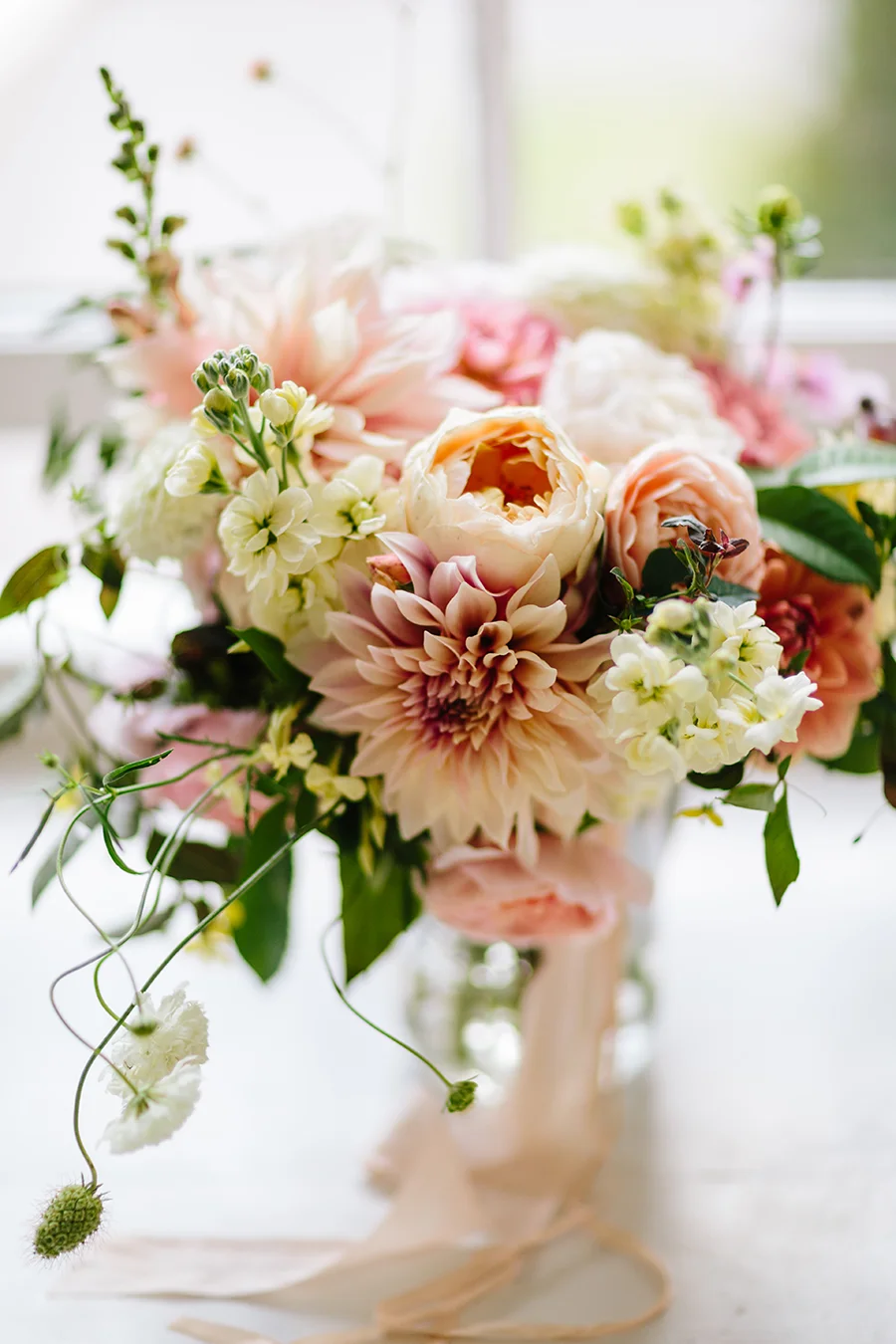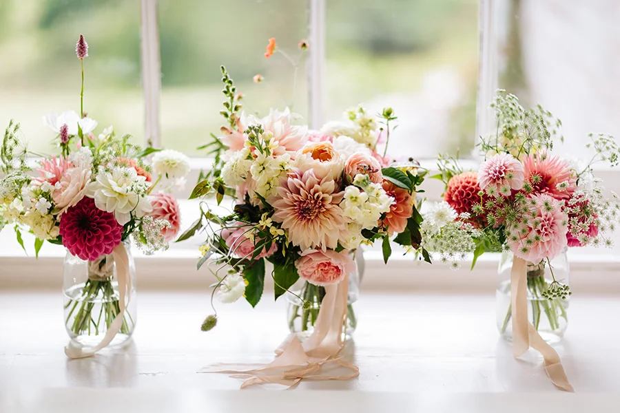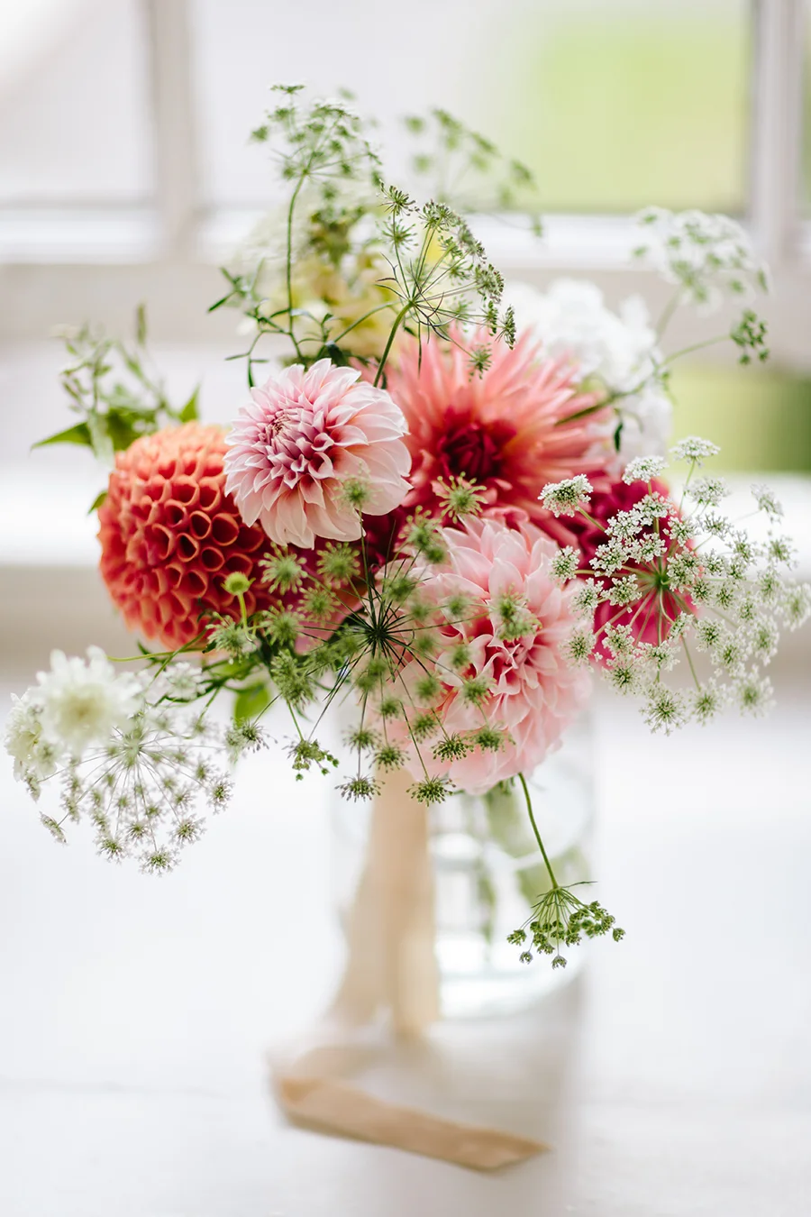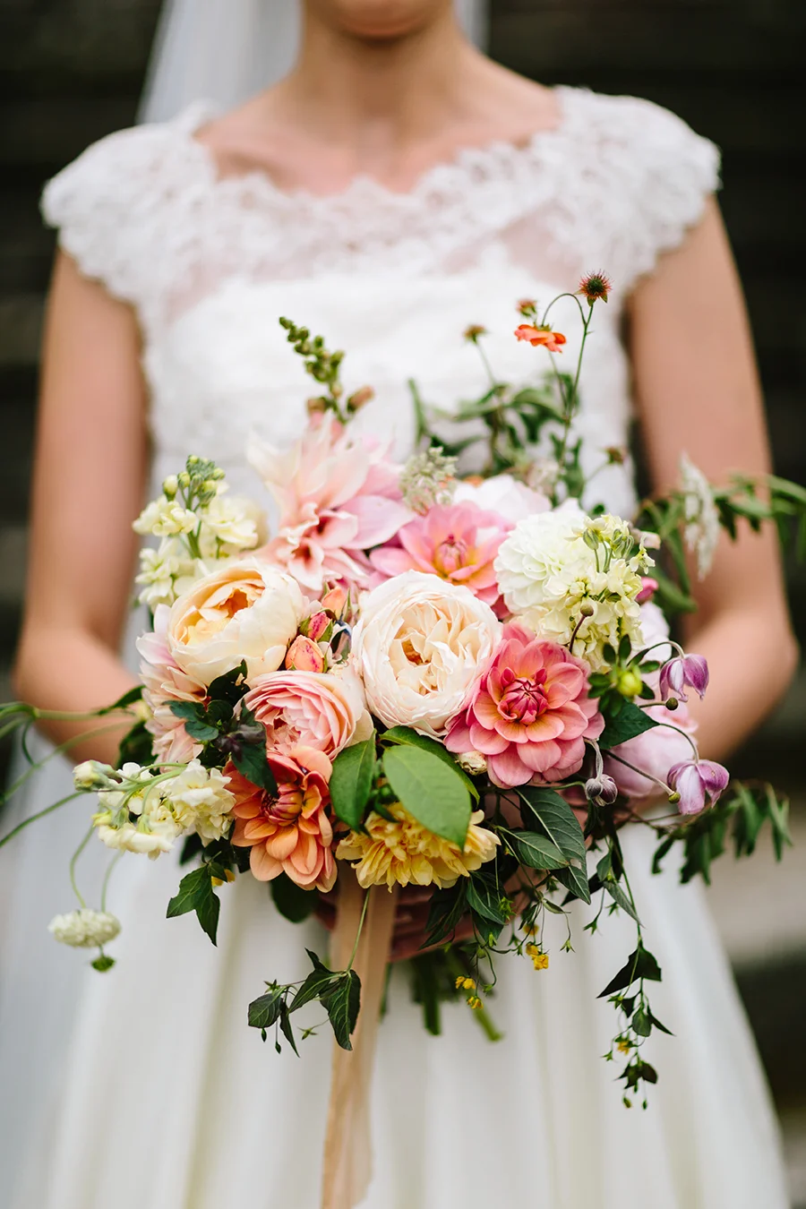 ''Our flowers were truly breathtaking. I'm not ashamed to say that I burst into tears when I saw them on the wedding morning. From our first meeting I felt completely confident that you understood exactly the look I wanted to achieve and I felt completely at ease throughout the entire planning process knowing we were in safe hands. My bouquet was the most beautiful I've ever seen (and I'm not alone in that though). With my favourite dahlias and the most beautiful heavily scented roses taking centre stage, finished off with flowing silk ribbons, I didn't want to put it down! The scent from our bouquets was out of this world and the reception flowers were simply magical - everyone I spoke to commented on how beautiful they looked and smelt. I couldn't recommend The Garden Gate Flower Company more highly to future brides and grooms. Thank you Becca and Maz for making our day just perfect!''