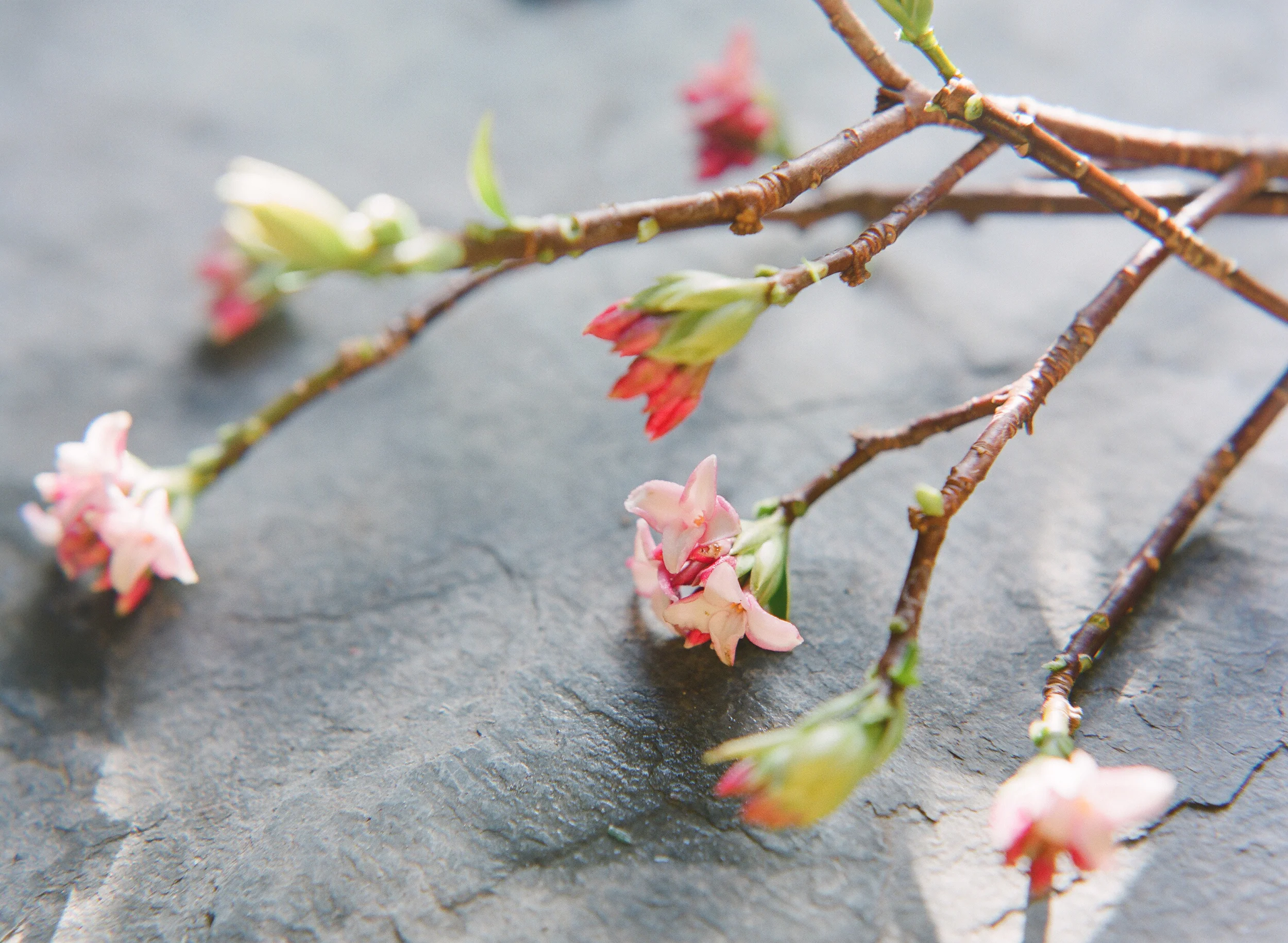 Start by gathering together your flowers and foliage. Its good to have a colour palette in mind and consider varying textures that work well together. We have chosen some wonderfully scented Daphne to feature in this buttonhole.