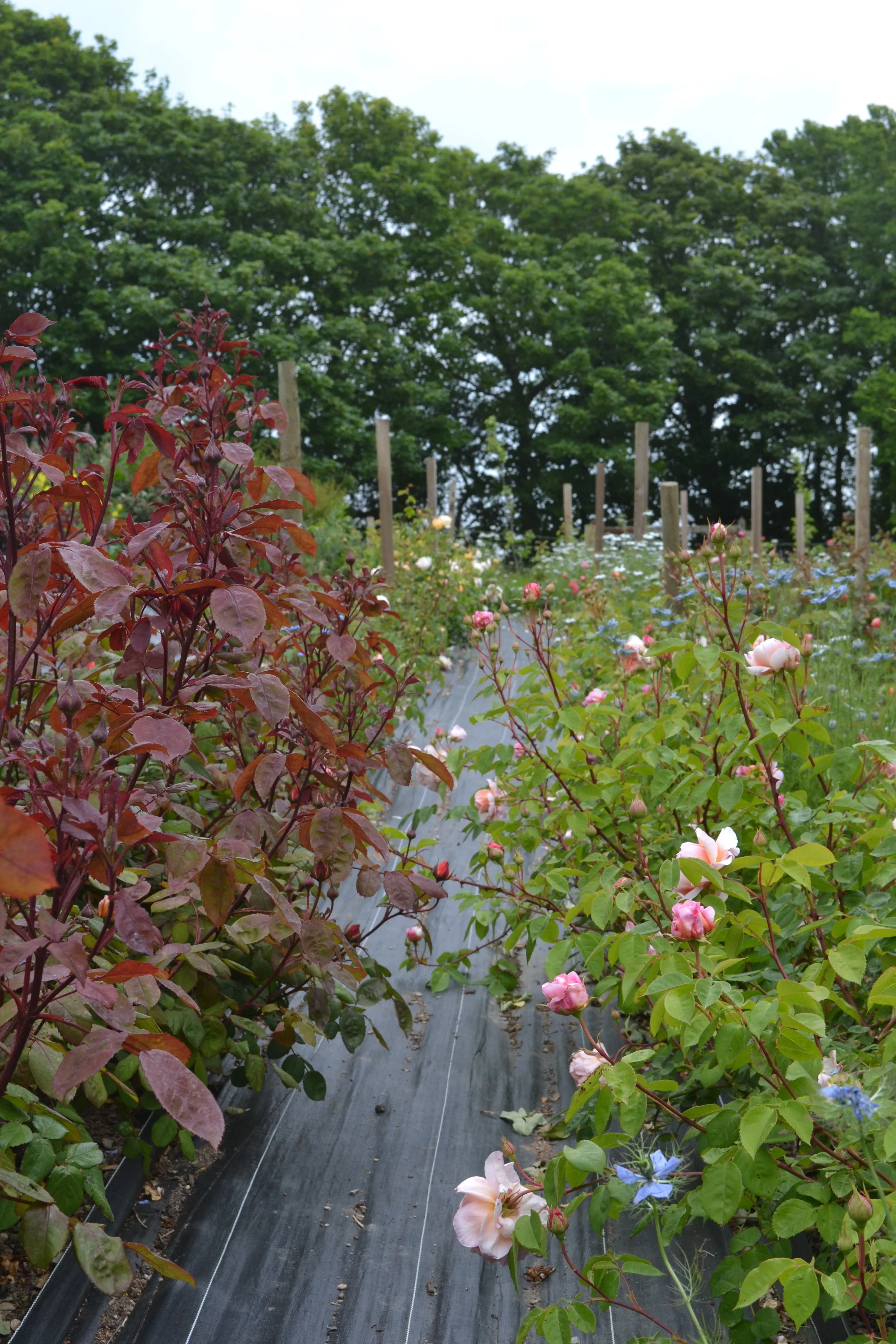 The rose garden is now in its second season and the shrubs look so much bigger than last year and from Maz's regular feeding regime they are looking very healthy. With inter-planted Nigella for a 'catch crop' this patch of the cutting garden is by far the most sensory place to be at the moment.