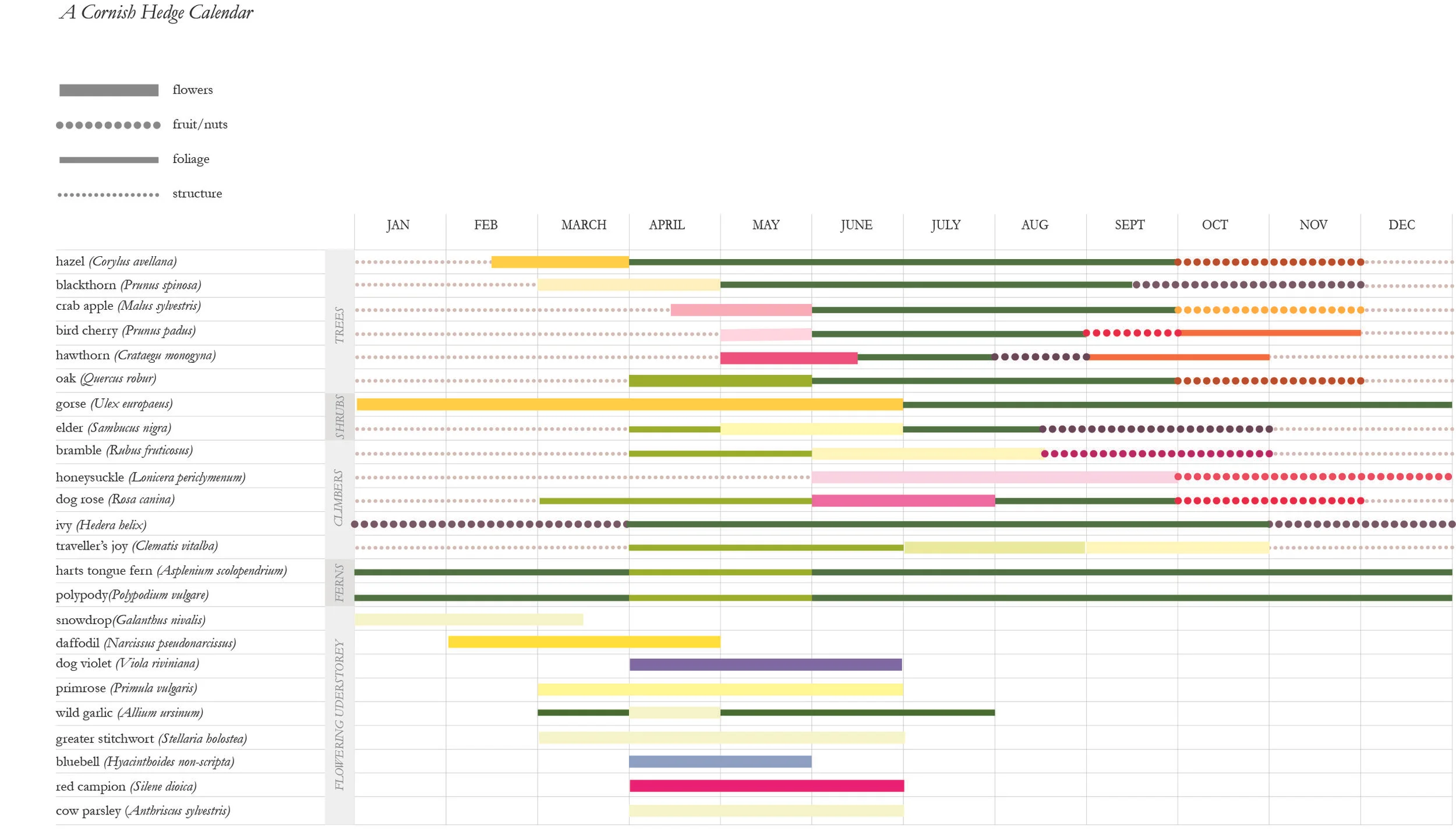There are over 30,000 miles of Cornish hedge latticed across the county with the most historic dating back to the Bronze and Iron Ages, 2000 - 4000 years ago. While hedges old and new reflect a traditional craft of construction the hedgerow plants are as individual as the land they lie upon. If you are seeking inspiration for a naturalistic arrangement a walk along a hedge lined lane at any time of year is bound to deliver. The ancient seed bank has a well-practiced symphony of blossom, structure, colour and scent. (It is really the ultimate example of lasagne planting.)