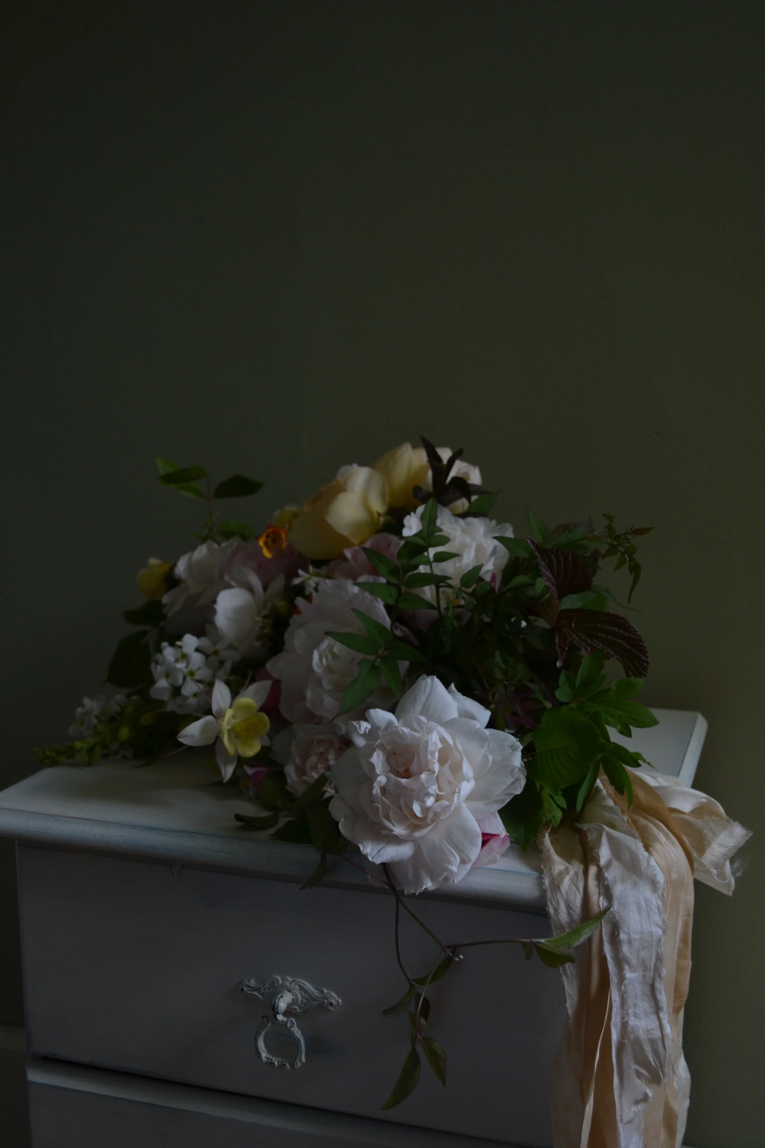 Then I did something I don't very often do - I laid the bouquet down. I'm not sure why I don't photograph it in this way more often, maybe I'm worried about flattening the bouquet or perhaps it's getting the angle right so you don't see too much stem. This bouquet looked so pillowy laid down and I got a bit snap happy! Enjoy x