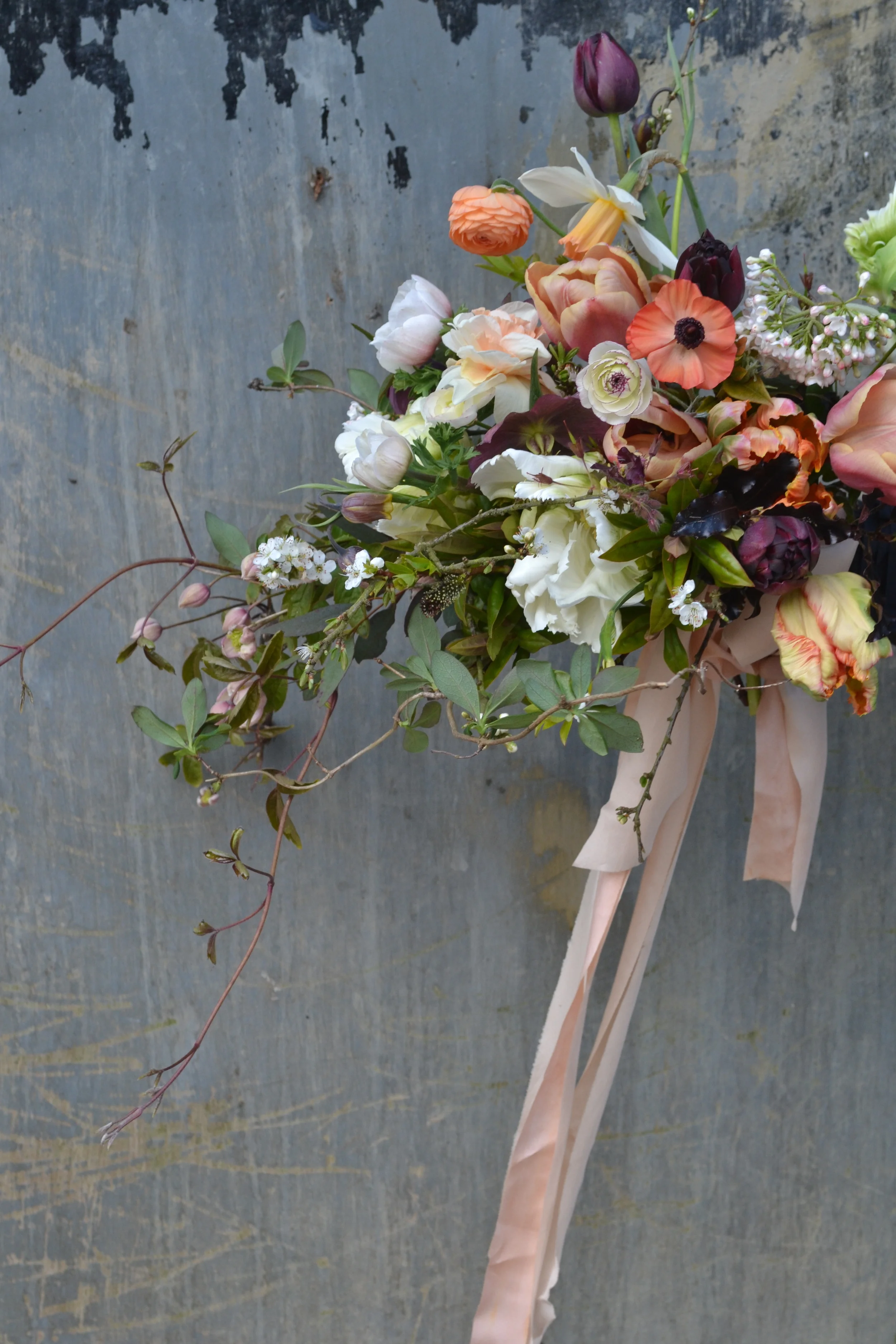 A bouquet wouldn't really be a bouquet without a fresh addition of silk ribbon from Lancaster & Cornish to highlight the peach undertones.