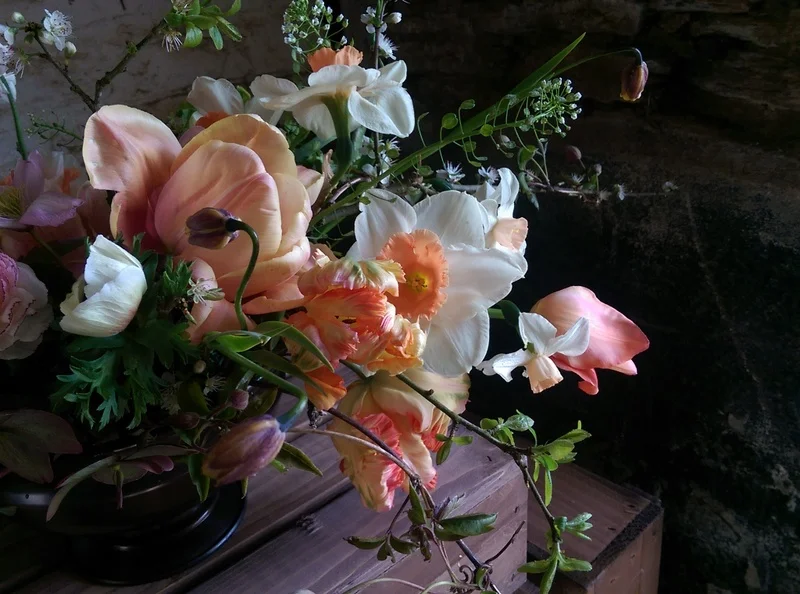 It is this time of year that is exciting in the garden, you know in September (actually our favourite flower month but you all know this already) you will have buckets of flowers and vast amounts to select from to make a whole host of different combinations.  But April...  each time I go to the farm I'm noticing a new kid on the block.